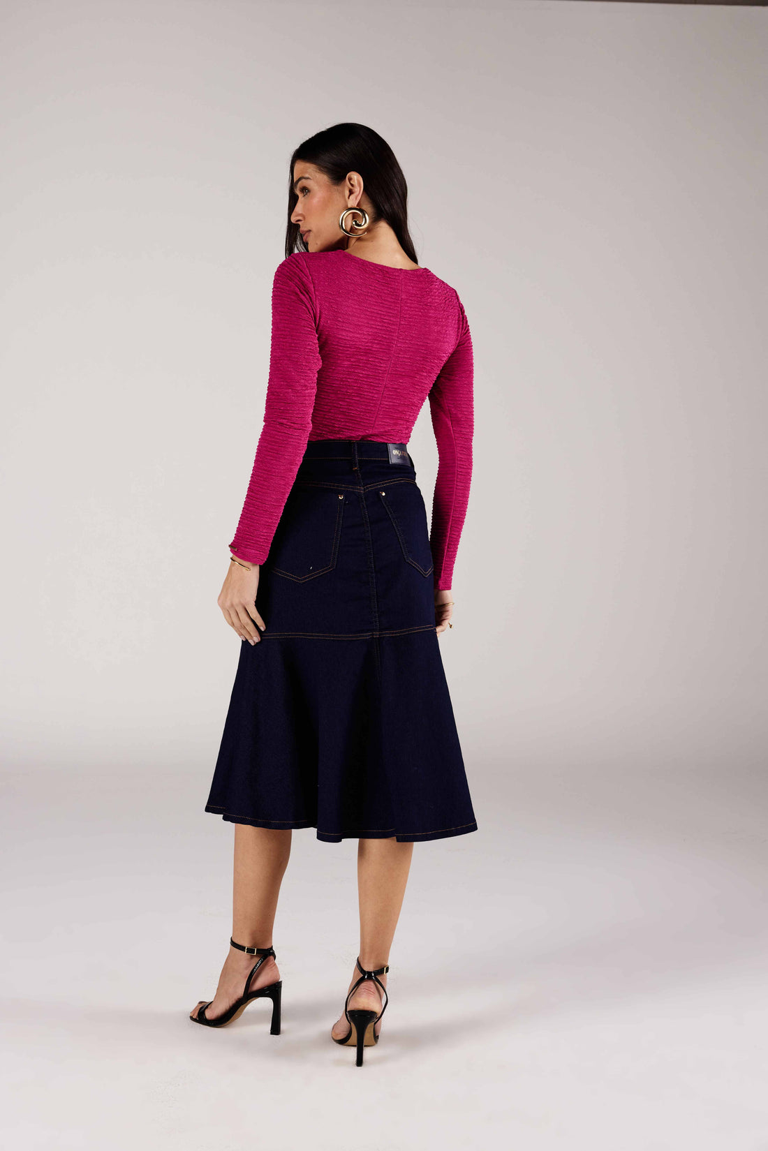 Dos modelos cargo com bolsos arredondados às saias midi com recorte godê e fenda frontal, cada peça é desenvolvida com atenção aos detalhes. Acabamentos em strass, croco, suede e lavações artesanais garantem exclusividade ao seu look.