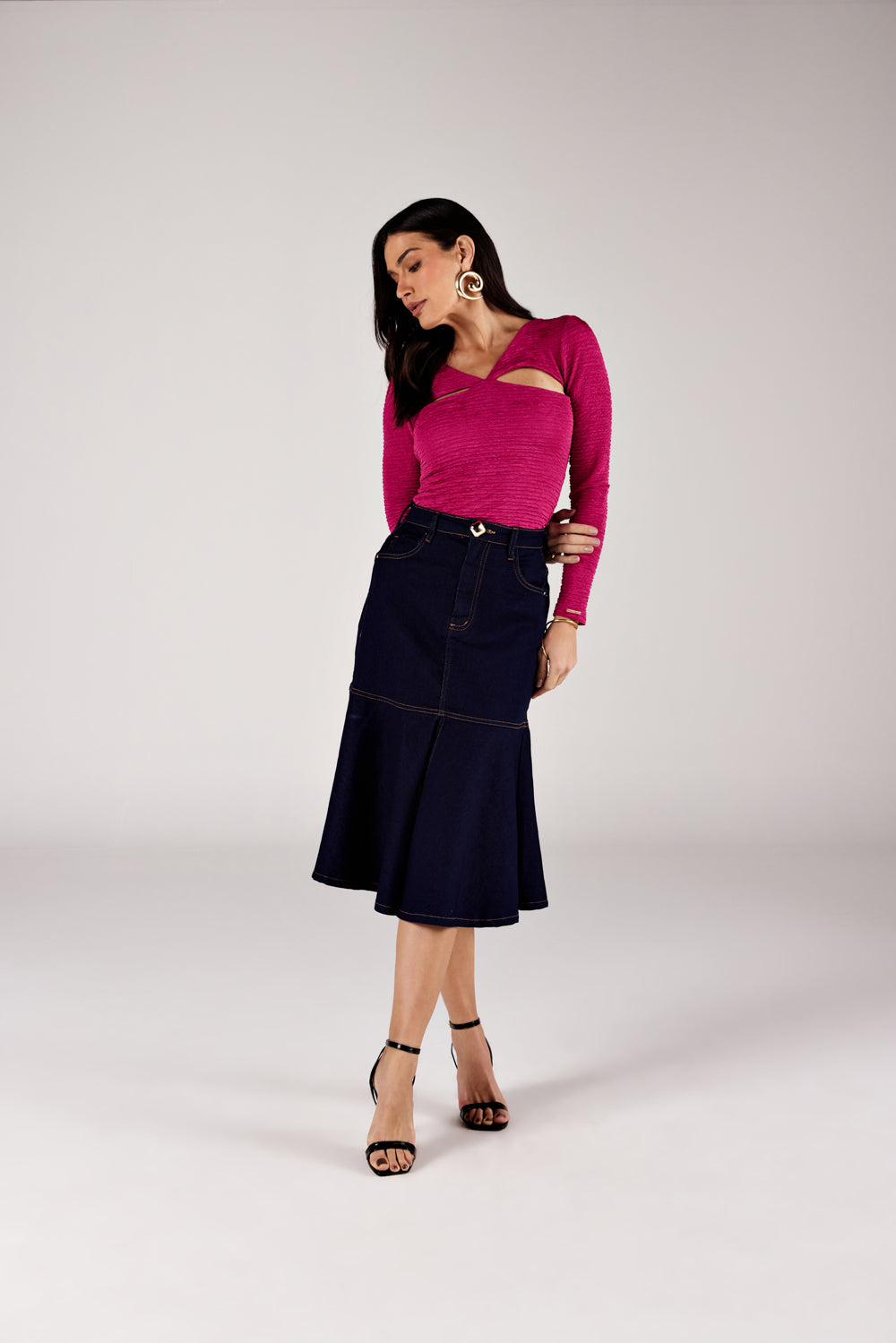 SAIA MIDI FEMININA RECORTE GODE JEANS ONÇA PRETA