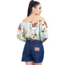 Blusa Onça Preta Ciganinha Floral PR23 Verde Feminino