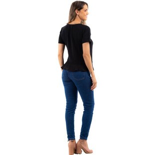 Blusa Onça Preta Babados Ve25 Azul Feminino