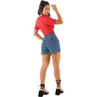 Top Jeans Onça Preta Amarracao Bordado Ve25 Azul Feminino