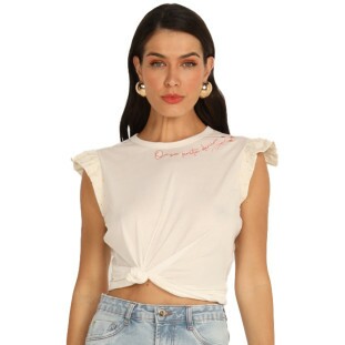 Blusa Cropped Onça Preta Risca Stras Ve25 Off White Feminino