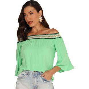 Blusa Onça Preta Ombro A Ombro Av23 Verde Feminino
