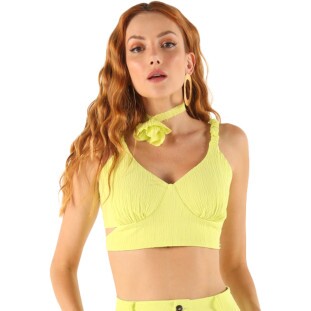 Top Onça Preta Transpassado Cut Off Ve25 Amarelo Feminino