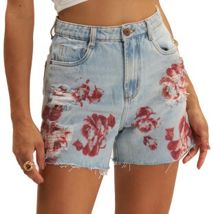 Shorts Jeans Onça Preta Floral O23 Branco Feminino